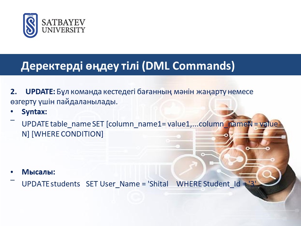 | Course: | Деректер қорын басқару жүйесі / Ягалиева Багдат Есеновна |